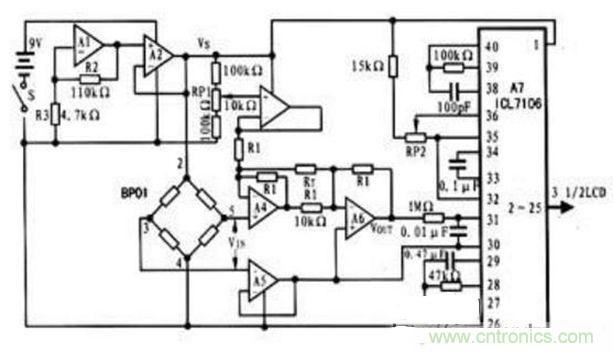 显示电路:显示电路选用三位半的显示驱动器。工作时,压力传感器BP01的输出经前置处理电路放大后,由显示驱动电路来驱动LCD,以读出测量的血压值。