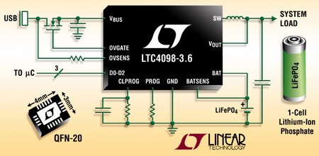 Linear 面向单节磷酸铁锂电池的高效电源管理器和充电器