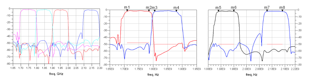 图:左蓝微电子四工器性能曲线(含封装基板)