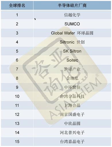 近日,亚化咨询发布《中国半导体硅片年度报告2022》,披露了2021年半导体硅片全球十五强榜单。前五名不出意外由上述五大巨头占据。令人欣喜的是,国内(未包含中国港澳台地区企业)有3家进入前十,7家进入前十五。
