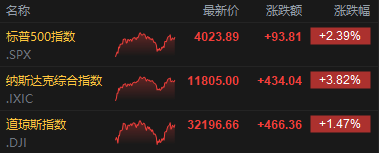 纳斯达克100指数的四只成份股中,拼多多收涨10.2%,百度涨8.4%,京东涨近6%,网易涨5.1%。