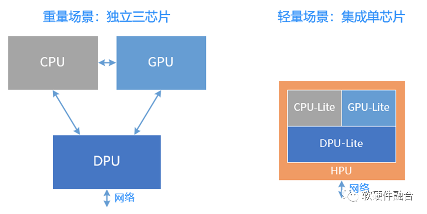HPU是超异构处理器(Hyper-heterogeneous Processing Unit),把CPU、GPU和DPU的功能再集成在一起,是一个功能综合的融合芯片: