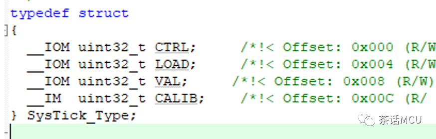 为什么我前面强调“基于STM32库定义的写法”呢?是因为有关SYSTICK的寄存器的命名,STM32库定义的跟ARM技术手册命名不一样。ARM的命名是这样的: