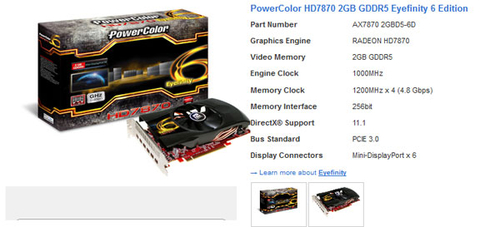 这款显卡就叫HD 7870 Eyefinity 6 Edition,规格上并无特殊之处,核心频率1000MHz,显存频率1200MHz,配备2GB GDDR5显存。