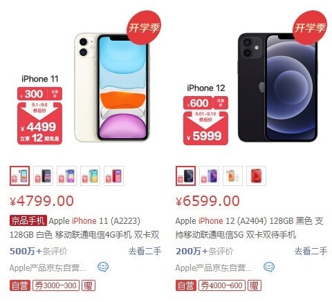 可以看到,iPhone12 128G 黑色版的售价为5999元远高于网传的4799元,倒是iPhone12“隔壁”的iPhone11 128G版的售价为4799元,这莫非是微博把iPhone12和iPhone11弄混了?想来不会有人犯这么低级的错误。