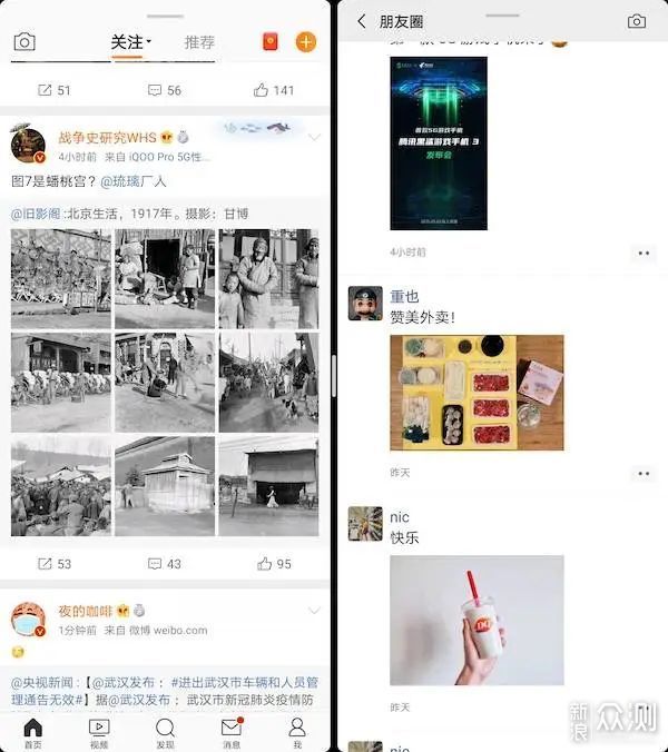 我用Mate Xs尝试了一会将微博和微信两个最高频的应用分屏使用。由于屏幕面积和比例不够,只能在中间对称分屏,但这种用法感觉很奇怪,我无法同时将注意力平均分到两个社交应用上。Mate Xs 确实提供了我想象中的分屏功能,但是在实际体验中,我得说这样的提升有限,毕竟Mate Xs的屏幕还只是iPad mini大小,难以提供良好的分屏体验。在个人经验中来看,分屏、包括悬浮窗口多任务这种功能的下限是横屏使用10.5英寸的iPad Pro,而这些多任务操作在小屏幕的iPad mini上同样不好使。