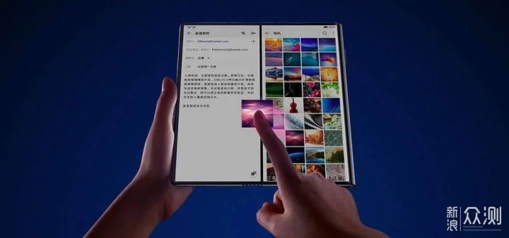 iPad将Spotify、网易云、微博、微信进行最小化分屏之后,左侧依旧能提供比完整Mate Xs屏幕更大的浏览体验。当然更好的方式是悬浮和自动隐藏,还能通过导航条对iPhone比例的应用进行快速切换。当然,我无法简单粗暴就表示折叠屏的多任务处理体验不好,因为对于绝大多数应用来说,如何在折叠屏上以合适的形态呈现还需要Google、厂商、开发者三方共同去推动。目前我觉得 Mate Xs在办公方面方面的优势或许更大,这和前面那些创造出的多任务需求不同,工作邮件中插入图片、文字、附件是常见且必要的需求,Mate Xs这种多任务拖拽文字和图片能力在这种场景下会得到更好的发挥。