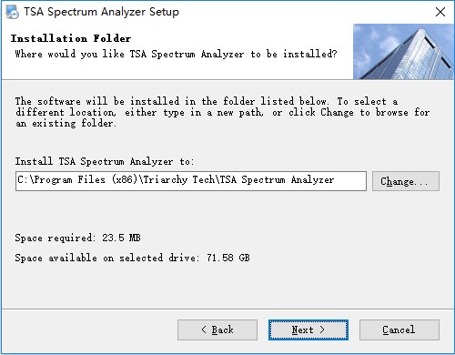 TSA程序安装路径:C:Program Files (x86)Triarchy TechTSA Spectrum Analyzer
