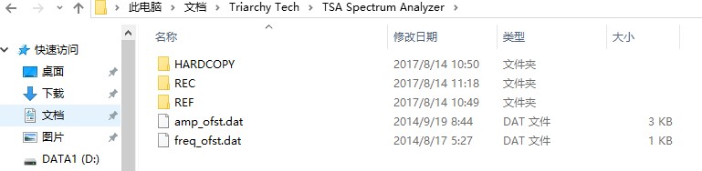 TSA数据文件夹安装路径C:UsersUserNameDocumentsTriarchy TechTSA Spectrum Analyzer