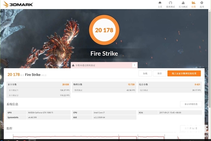 我们采用3DMARK来进行显卡性能的测试,选用的基准测试模式为Time Spy/Fire Strike/Ultra,Fire Strike Ultra可以将渲染分辨率提高到 3840 x 2160 (4K UHD),每帧绘制的像素数量是Fire Strike的四倍,使用该模式测试时无需使用 4K 显示器,但显卡必须至少有3GB显存。