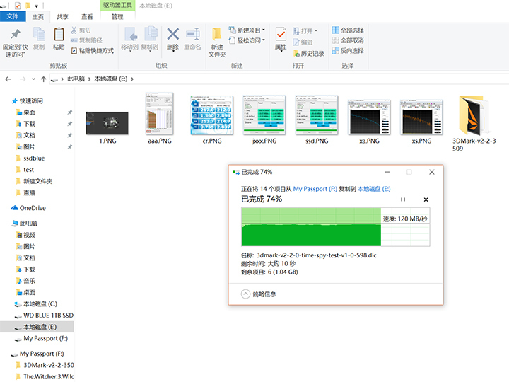 我们也进行了大型压缩包的解压缩测试,45GB大小的压缩包,完全解压时间在10:26秒,速度还是非常快的。