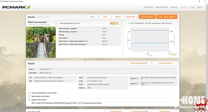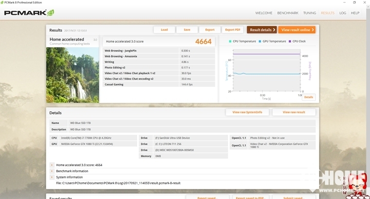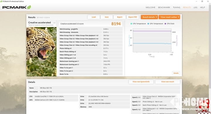 通过测试可以看出,在经典的Home、Creative、Work accelerated测试中得分为4664、8194、4851,性能毋庸置疑,十分出色的成绩。