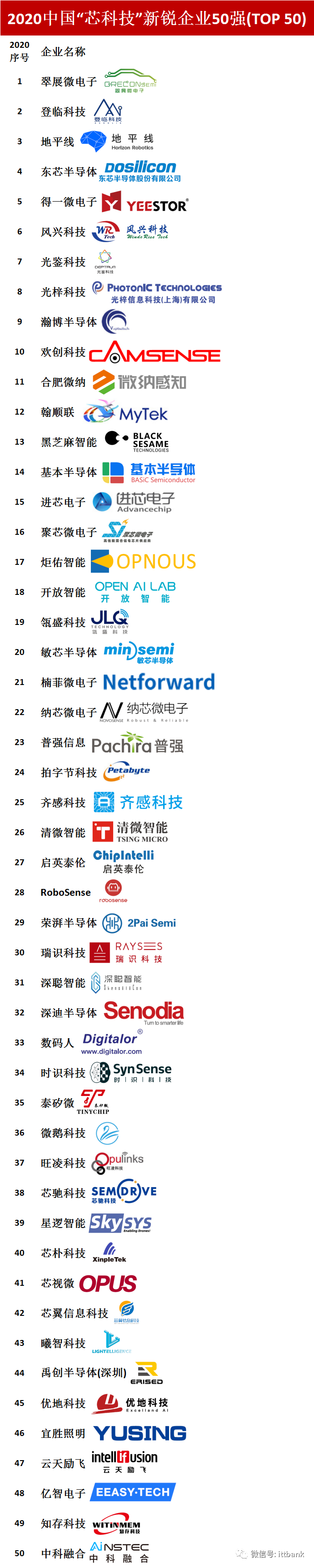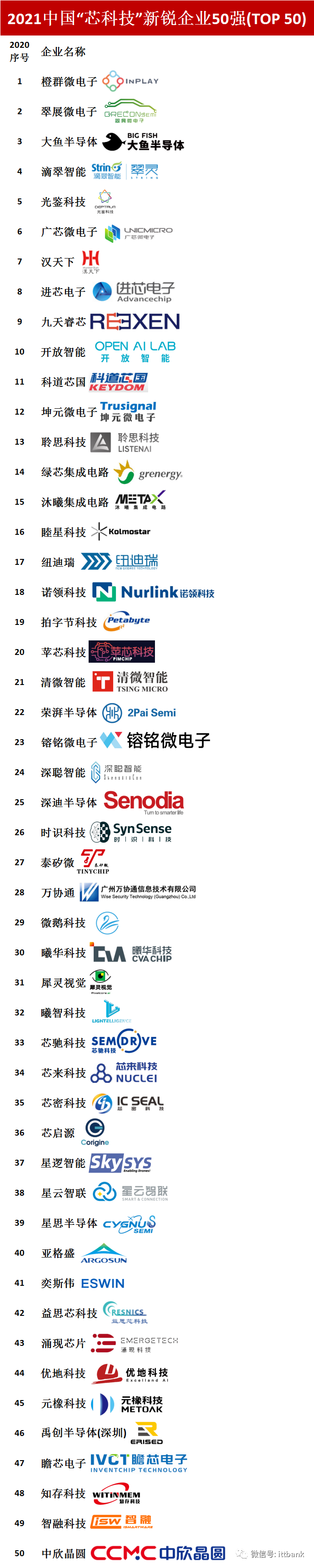 2021中国芯片“芯科技”新锐企业50强(TOP 50)