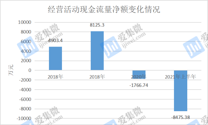 招股书显示,2018年至2021年上半年,清越科技经营活动产生的现金流量净额分别为4903.40万元、8125.30万元、-1766.74万元、-8475.38万元,下降趋势明显,2020年及2021年上半年甚至出现负值。