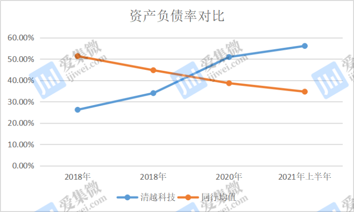 与此同时,清越科技的负债水平也逐年走高。报告期内,清越科技的资产负债率分别为26.19%、33.98%、50.89%、56.09%,同期同行业企业的平均负债率为51.34%、44.72%、38.63%、34.67%,可以看出清越科技的资产负债率逐渐走高,而同行公司均值却逐渐走低。其称,由于受到较大规模项目建设、外部债务融资增加及分红等因素的影响,公司资产负债率总体呈现逐年上升的趋势。