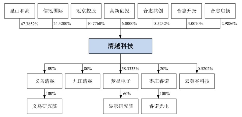 作为国内较早布局OLED业务的企业,清越科技过往与维信诺有着密切关系。据笔者了解,清越科技前身为昆山维信诺科技有限公司,是上市公司维信诺的孙公司,主要聚焦PMOLED业务。