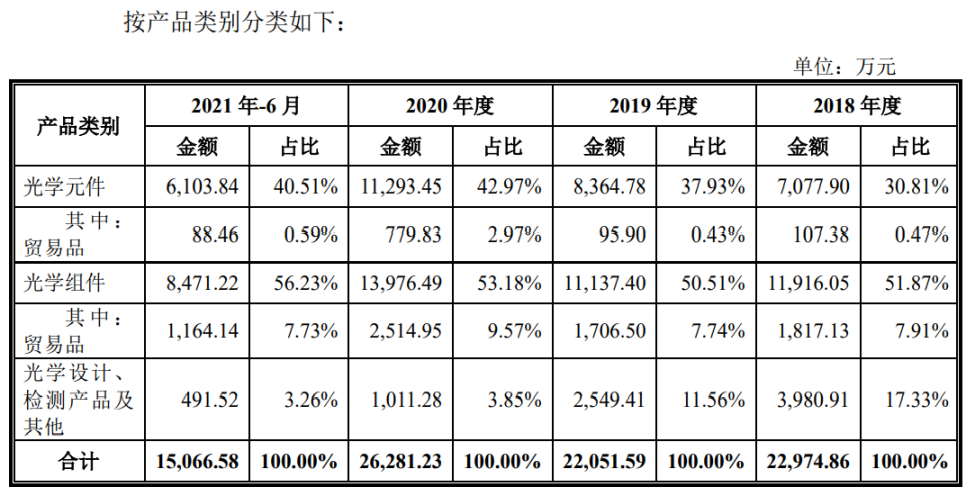 从产品端来看,波长光电收入占比最大的两个业务分别为光学元件和光学组件。