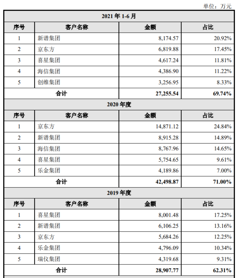 目前,公司已经与京东方、海信集团、乐金集团、喜星集团、新谱集团、瑞仪集团等国内外知名显示面板制造商建立了合作关系,公司产品的终端客户覆盖华为、小米、海信、TCL、苹果、微软、LG、夏普等国内外知名消费电子企业。