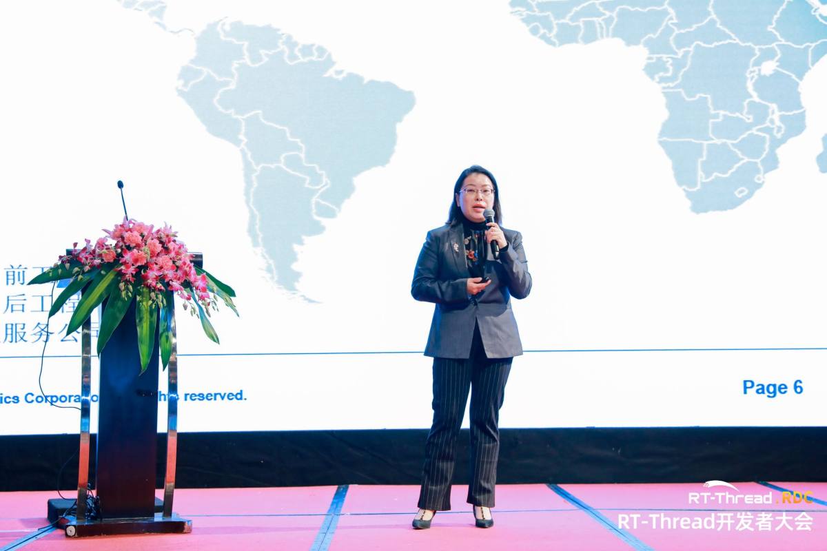 瑞萨电子中国MCU市场部总监沈清发表了《瑞萨电子:全“芯”未来》主题演讲,介绍了瑞萨电子及其产品线,以及瑞萨以怎样的“全芯”未来在中国布局,并分享与RT-Thread的合作计划,瑞萨将积极参与社区建设,高效投入RT-Thread中文社区支持。
