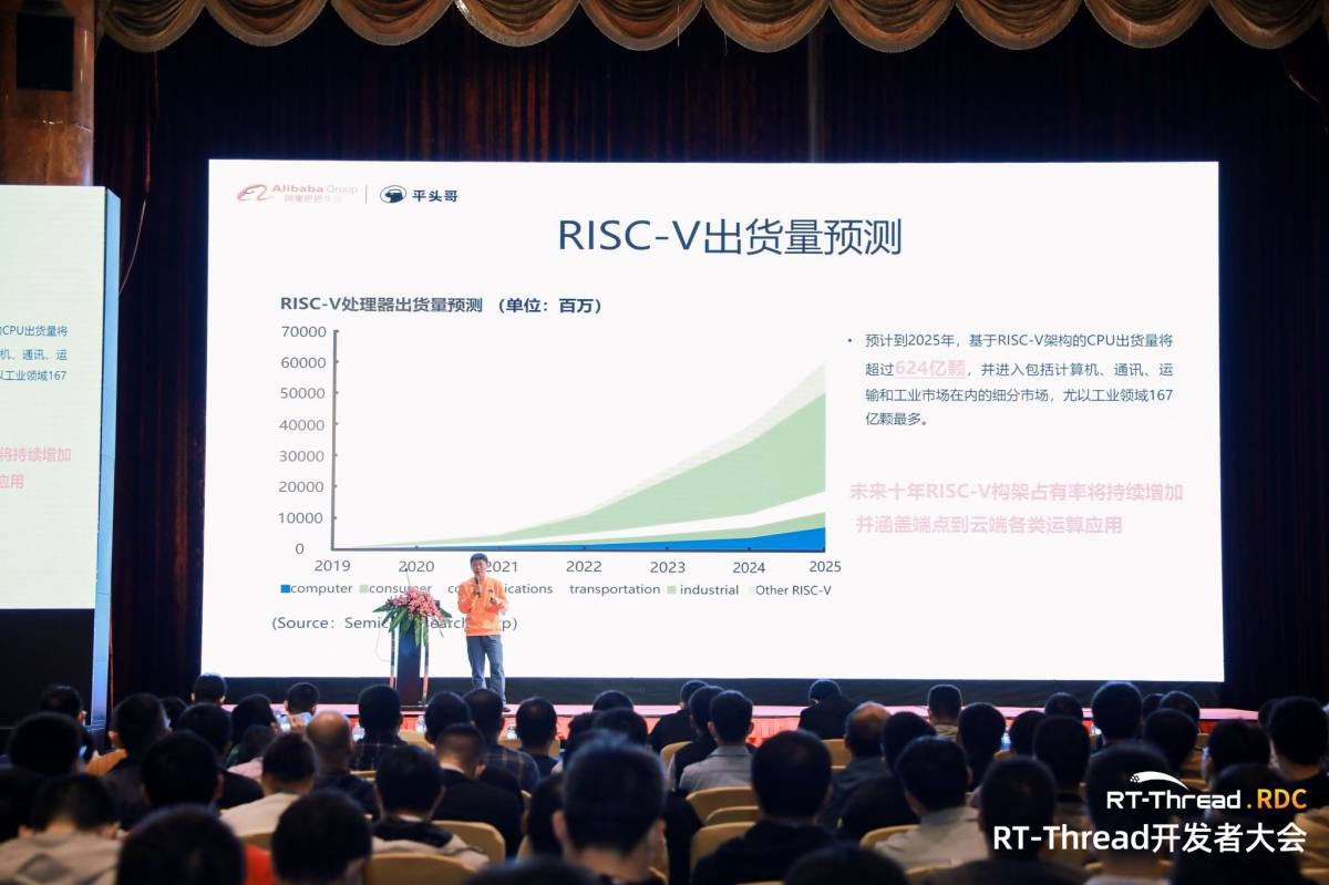 平头哥半导体高级经理刘云飞发表了《玄铁RISC-V:从开源加持到商业共赢》主题演讲。