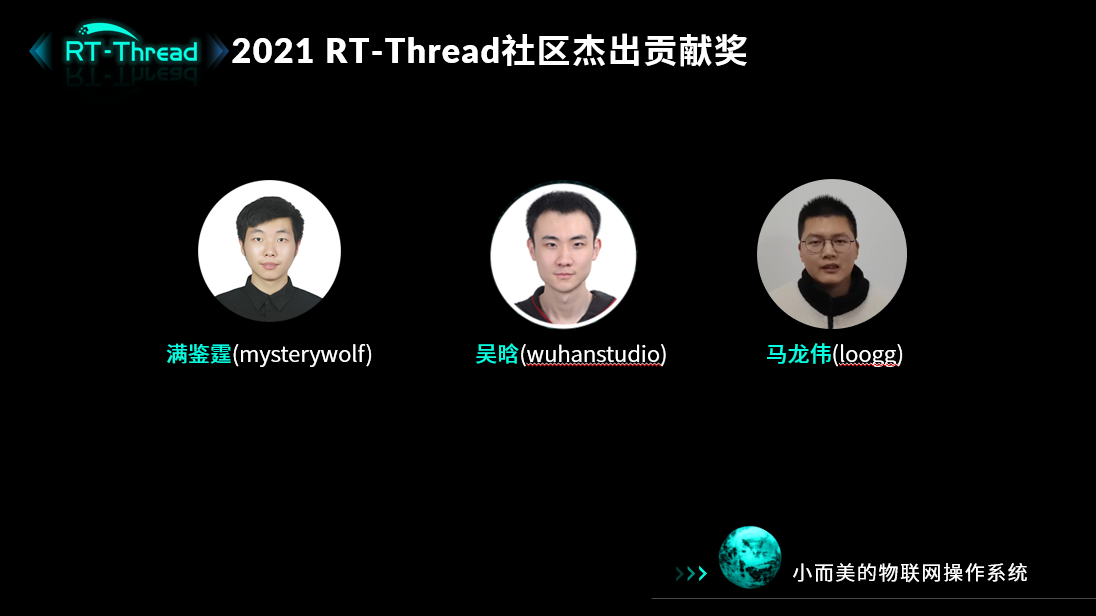 本次开发者大会还进行了年度RT-Thread社区杰出贡献奖和社区杰出生态合作伙伴奖颁奖仪式,希望更多的开发者和合作伙伴参与RT-Thread的代码和生态资源贡献。