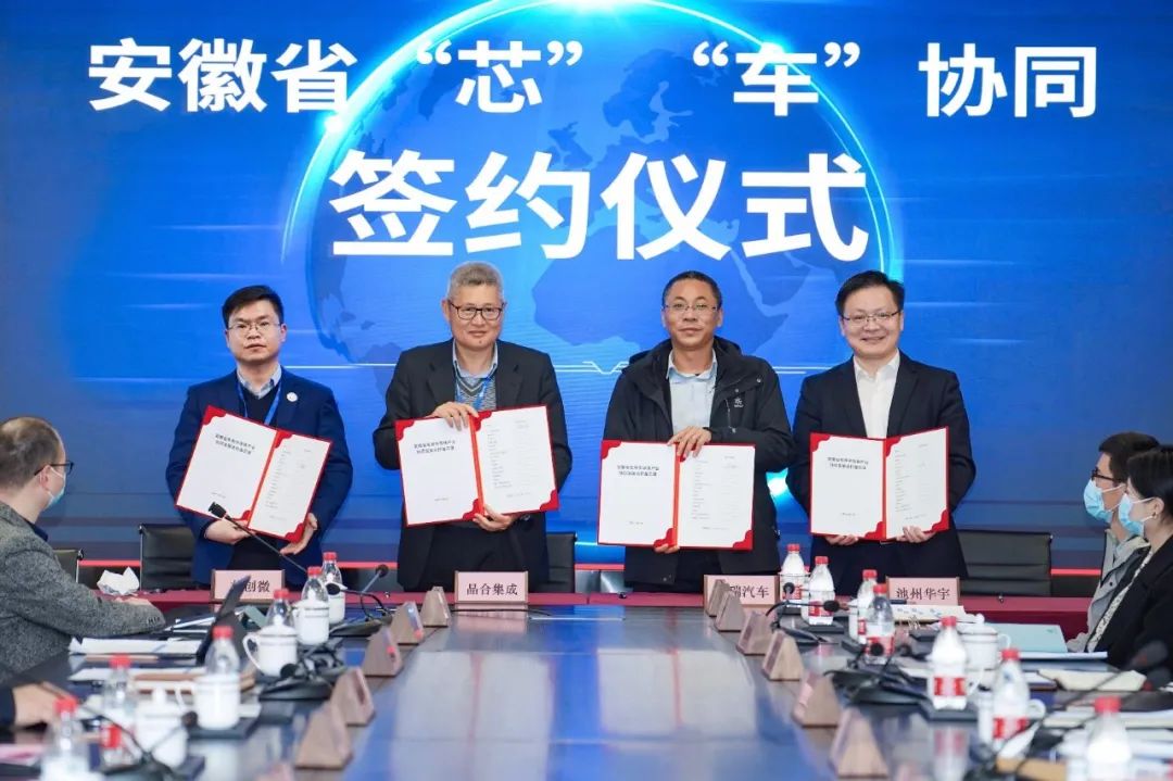 会议最后,在安徽省经济和信息化厅组织下,池州华宇作为省内芯片封装重点企业,同省内集成电路设计、制造与车企在台上共同签署了《产业链合作备忘录》。