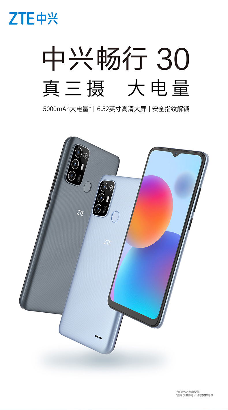 798 元,中兴畅行 30 手机发布:搭载紫光展锐 SC9863A 芯片、5000mAh 电池
