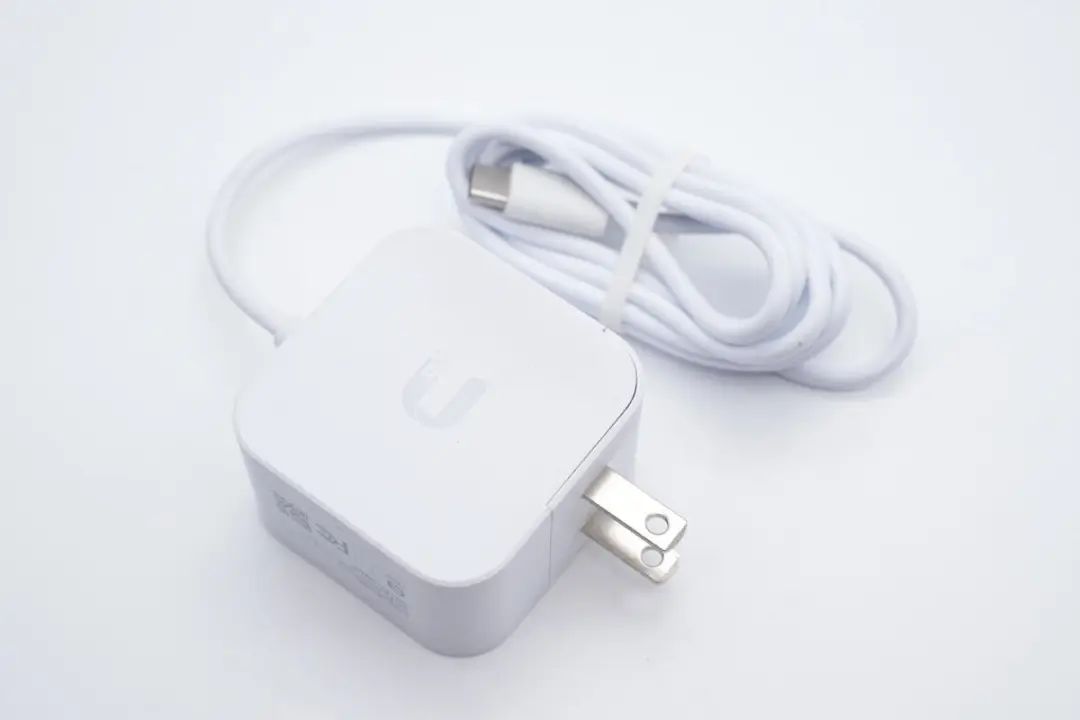 充电头网拿到了一款Ubiquiti优倍快的USB-C充电器,同样也是白色外观设计。这款充电器为固定美规插脚设计,自带1.5米长输出线缆,只支持5V3A输出,看起来是某种产品的配机充电器。下面就对这款充电器进行拆解,看看内部的方案和用料。