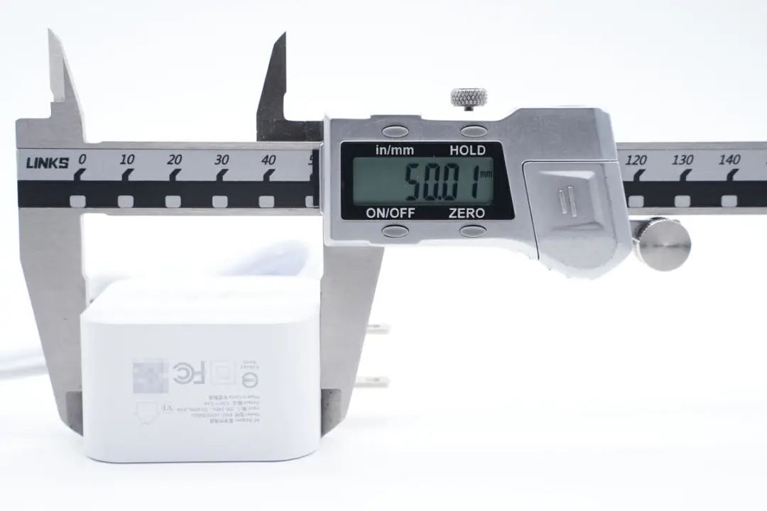 测得充电器机身长度为50.01mm。