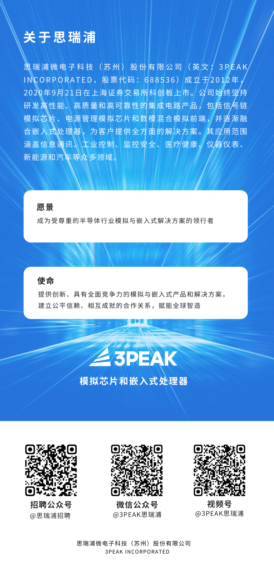 [ 新闻来源:3PEAK思瑞浦,更多精彩资讯请下载icspec App。如对本稿件有异议,请联系微信客服specltkj]