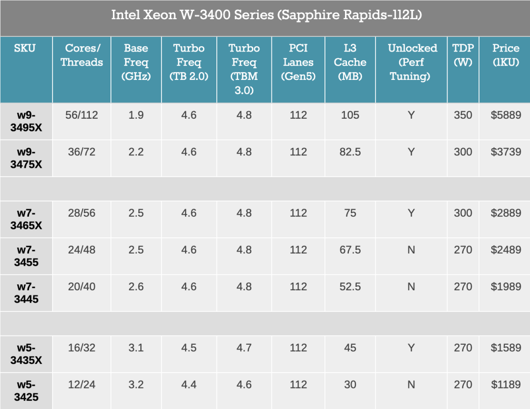 英特尔至强W-3400系列:“专家”平台,最多56核,112个PCIe 5.0通道,8通道内存