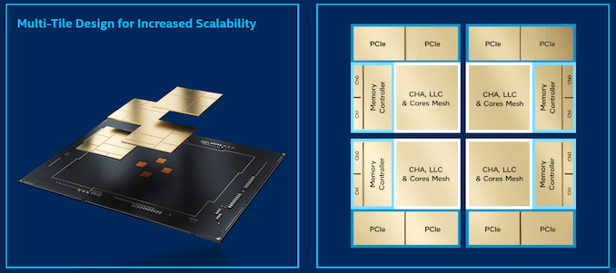 特别是至强W-3400系列,基于英特尔Sapphire Rapids Extreme Core Count (XCC)芯片,该芯片目前用于英特尔高端至强服务器部件。XCC芯片依赖于4个计算模块,使用英特尔最新的EMIB互连连接在一起,这是至强工作站处理器的第一个互连。