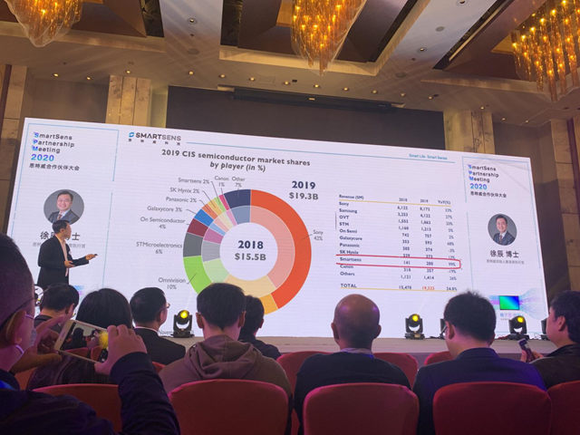 另外,Yole统计了近两年来各大厂商在全球CIS市场的市占,徐辰博士表示,2018年到2019年,市场份额分布基本上没有发生变化。不过可以看到有两家中国公司发生了明显的改变,其中思特威的出货实现了99%的同比大增。