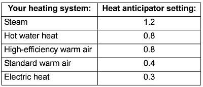 要克服这些问题,在预测加热器的镍铬合金在线有一个可调整的滑条,能控制通过加热器的电流量──电阻较小的时候电流就越大、发热也更大,依据著名的公式P = I2。 Honeywell也提供了参考设定值(如下表),也就是预测器电流值(安培)。