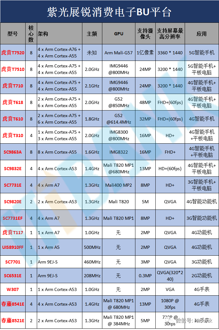 紫光展锐致力于移动通信和AIoT领域核心芯片的自主研发及设计,产品涵盖2G/3G/4G/5G移动通信基带芯片、AIoT芯片、射频前端芯片、无线连接芯片等,是全球全面掌握2G/3G/4G/5G移动通信技术以及IoT等全场景通信技术的少数企业之一。
