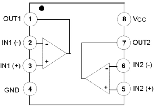 LM358内部包括有两个独立的、高增益、内部频率补偿的双运算放大器,适合于电源电压范围很宽的单电源使用,也适用于双电源工作模式,在推荐的工作条件下,电源电流与 电源电压无关。它的使用范围包括传感放大器、直流增益模组,音频放大器、工业控制、DC增益部件和其他所有可用单电源供电的使用运算放大器的场合。LM358的封装形式有塑封8引线双列直插式和贴片式。